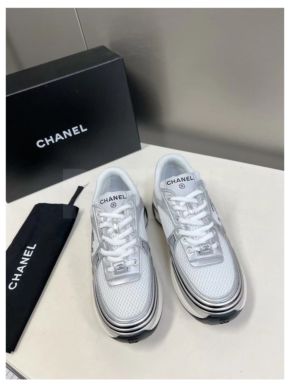 (여) 샤넬 cc로고 크루즈 메탈 매쉬 레더 실버