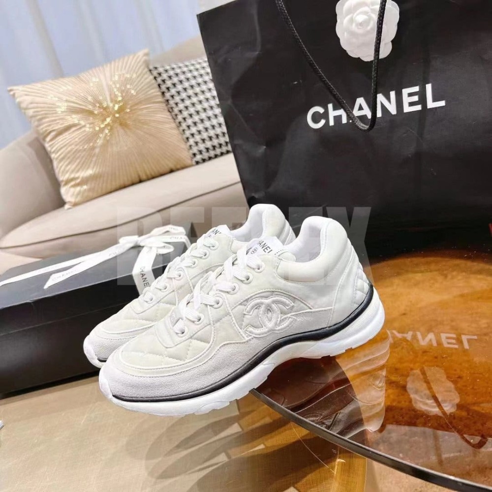(여) 샤넬 cc로고 패브릭 스웨이드 카프스킨 라이트그레이_KS